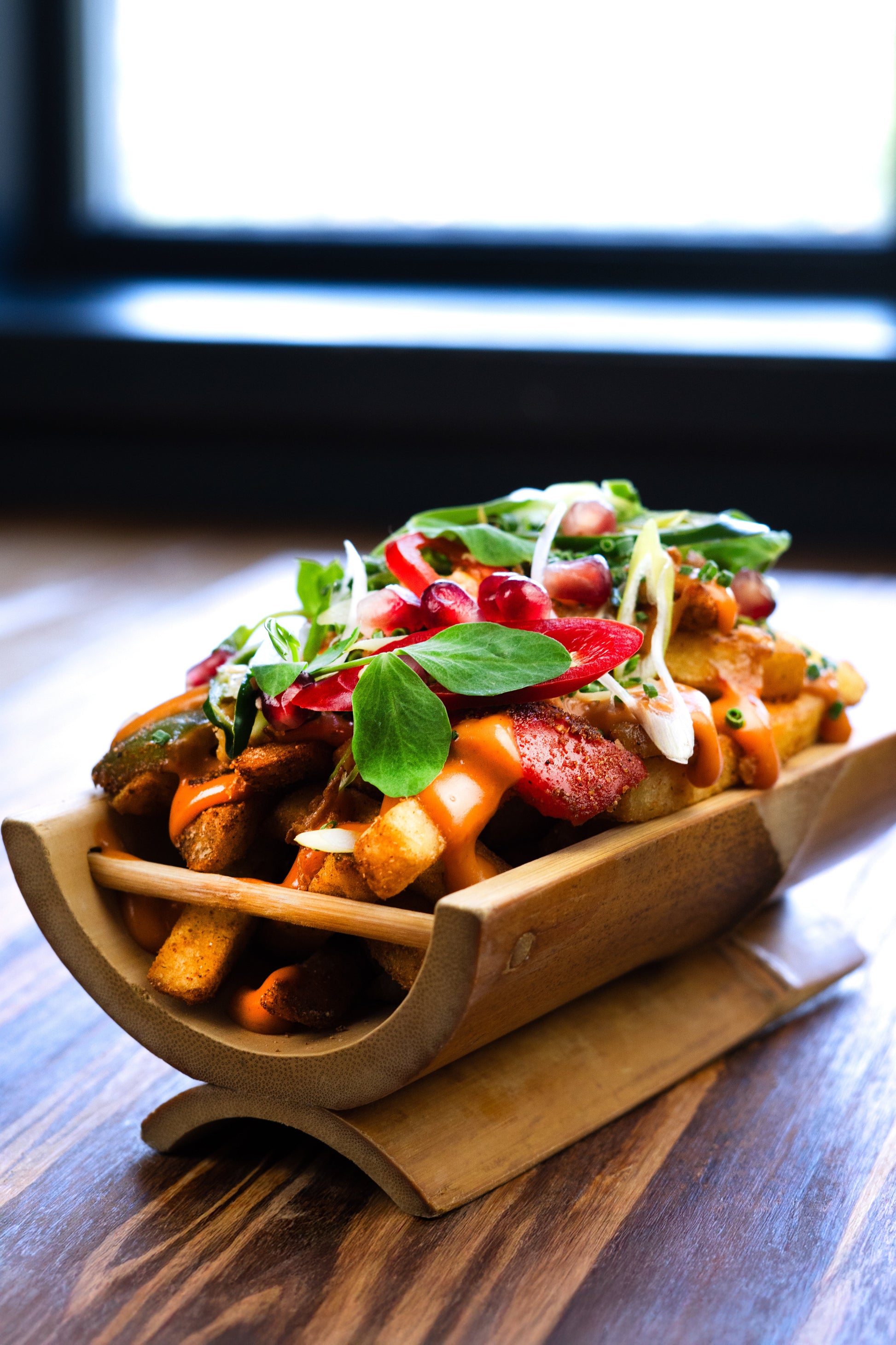Chinese five-spice, mixed peppers, red onion, chipotie mayo